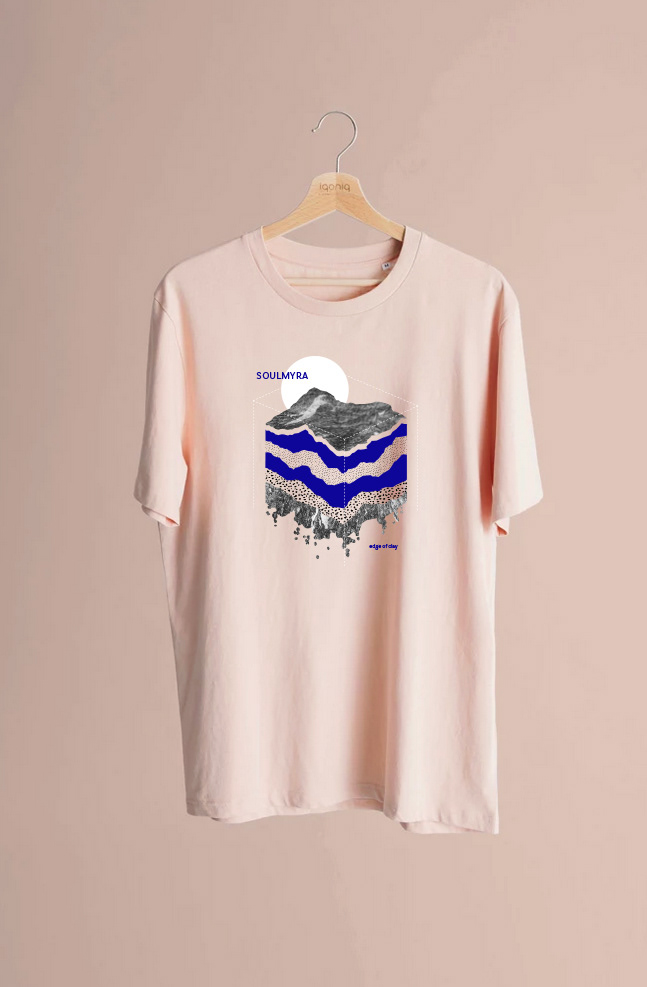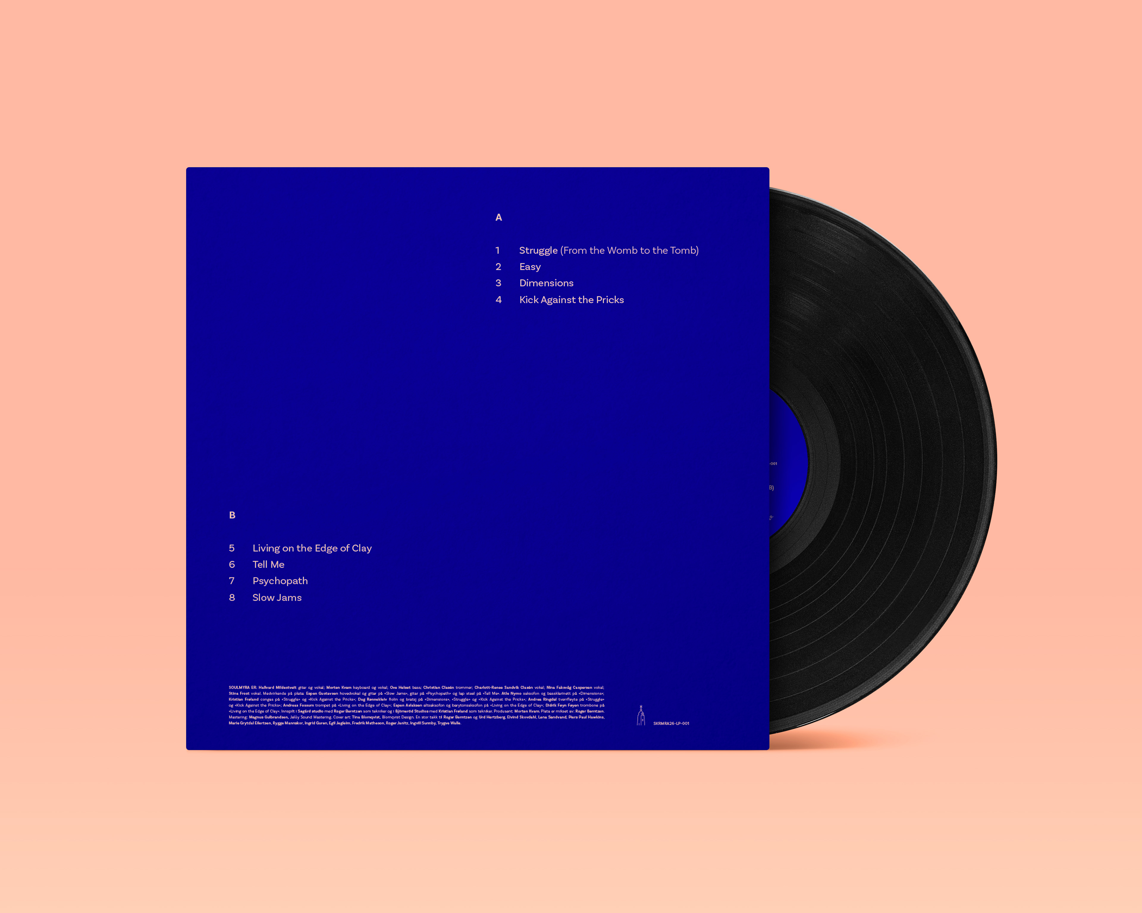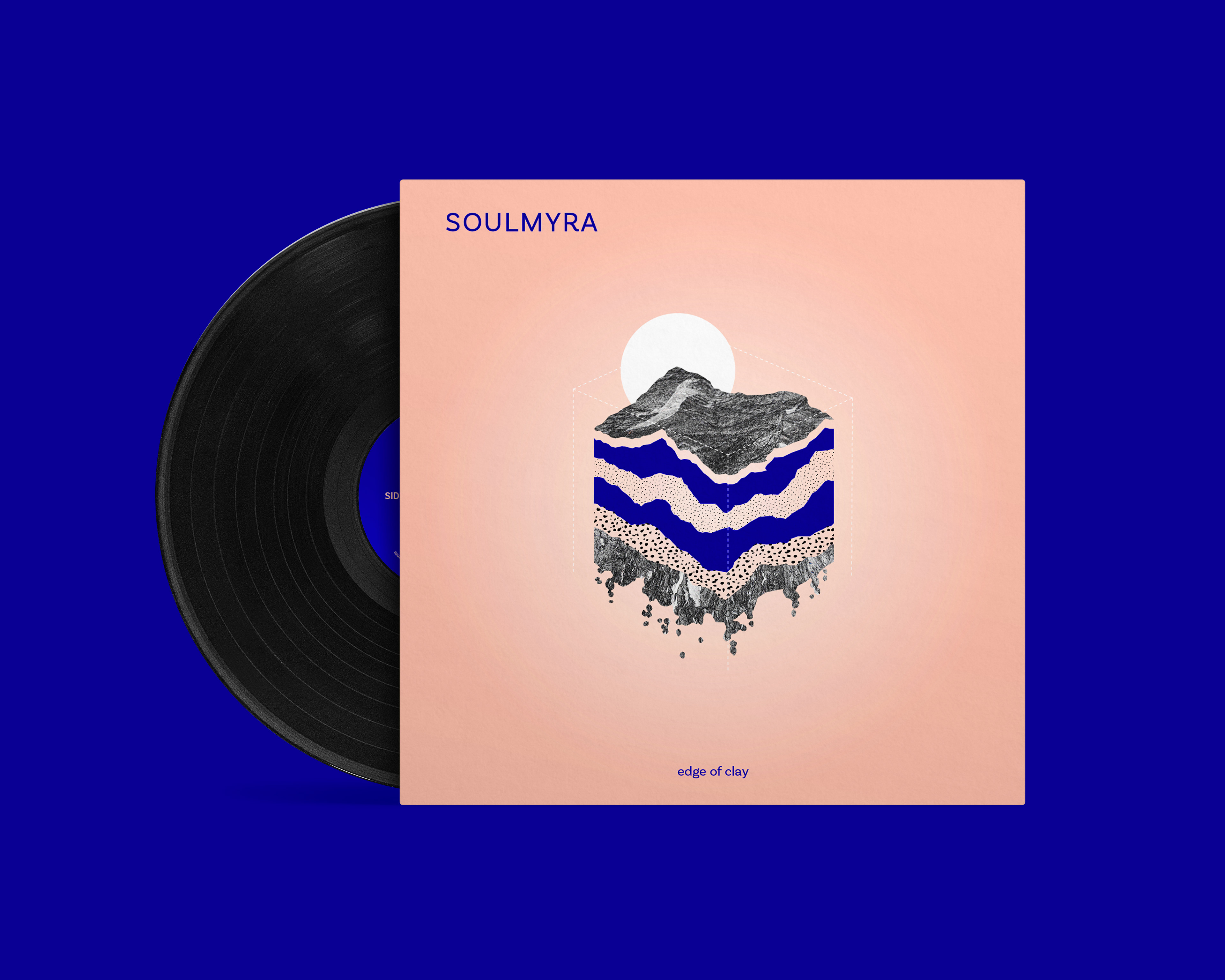 LP-cover og merch for Soulmyra «edge of clay». Platetittelen viser til det omdiskuterte kvikkleireområdet i Moss, derav idéen med tverrsnitt av jordlag som grafisk form. Coveret er trykket med Pantonefarger som skaper ektra kontrast og glans. Vinyl er trykket av Discrepublic, handlenett av Konsis. Design og foto: Blomqvist Design