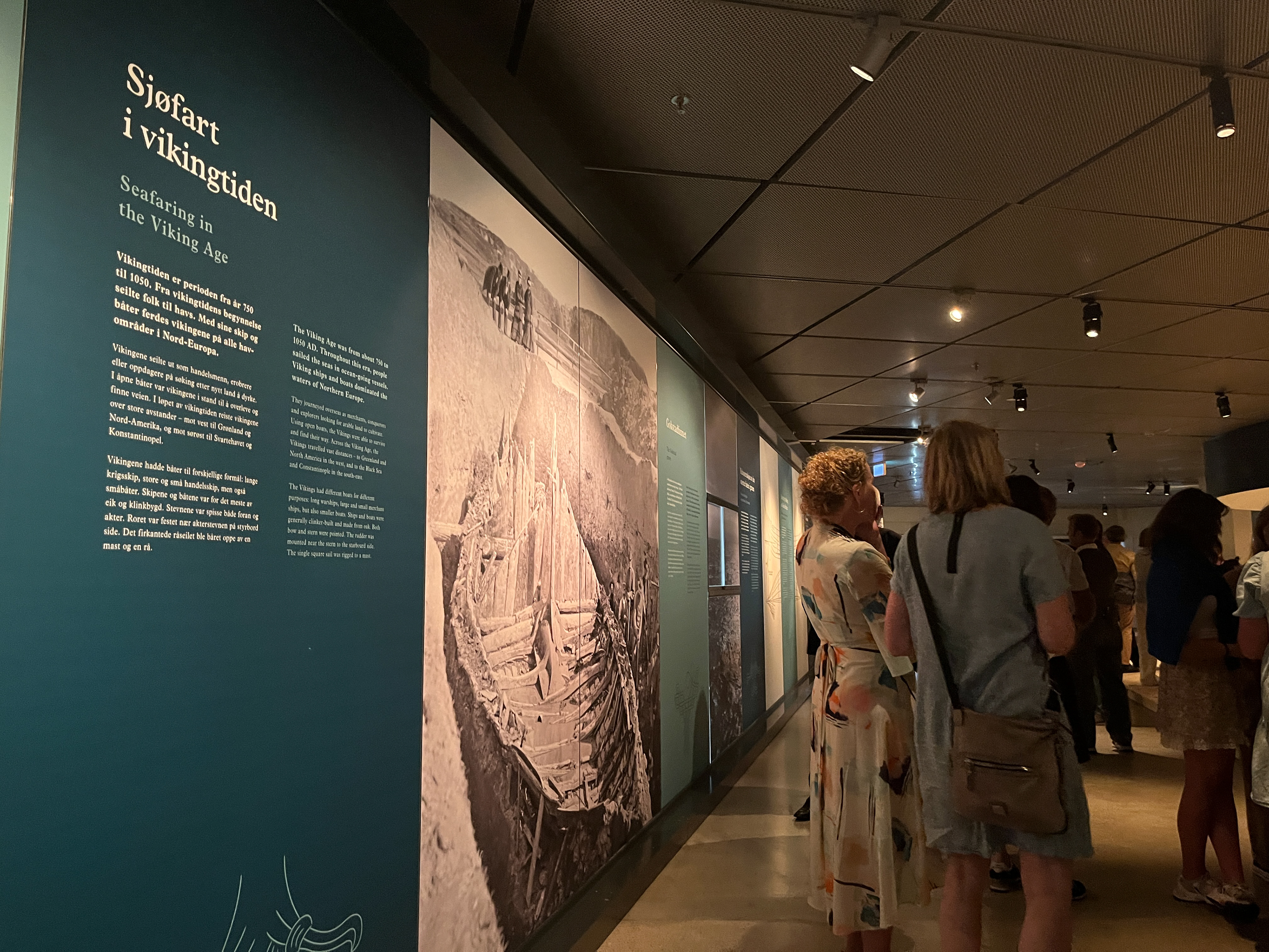 Den nye utstillingen «Vikingtidens båtbygger» setter fokus på vikingtidens tradisjonshåndverk og båtbygging. Her kan du kan se en av de originale båtene fra Gokstadhaugen. Oppdragsgiver: Bolt Design.