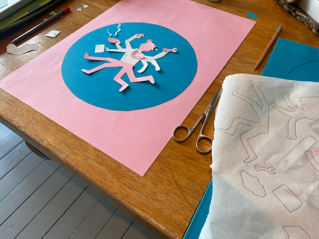 Papirklipp-illustrasjoner til publikasjonen Injuria, for